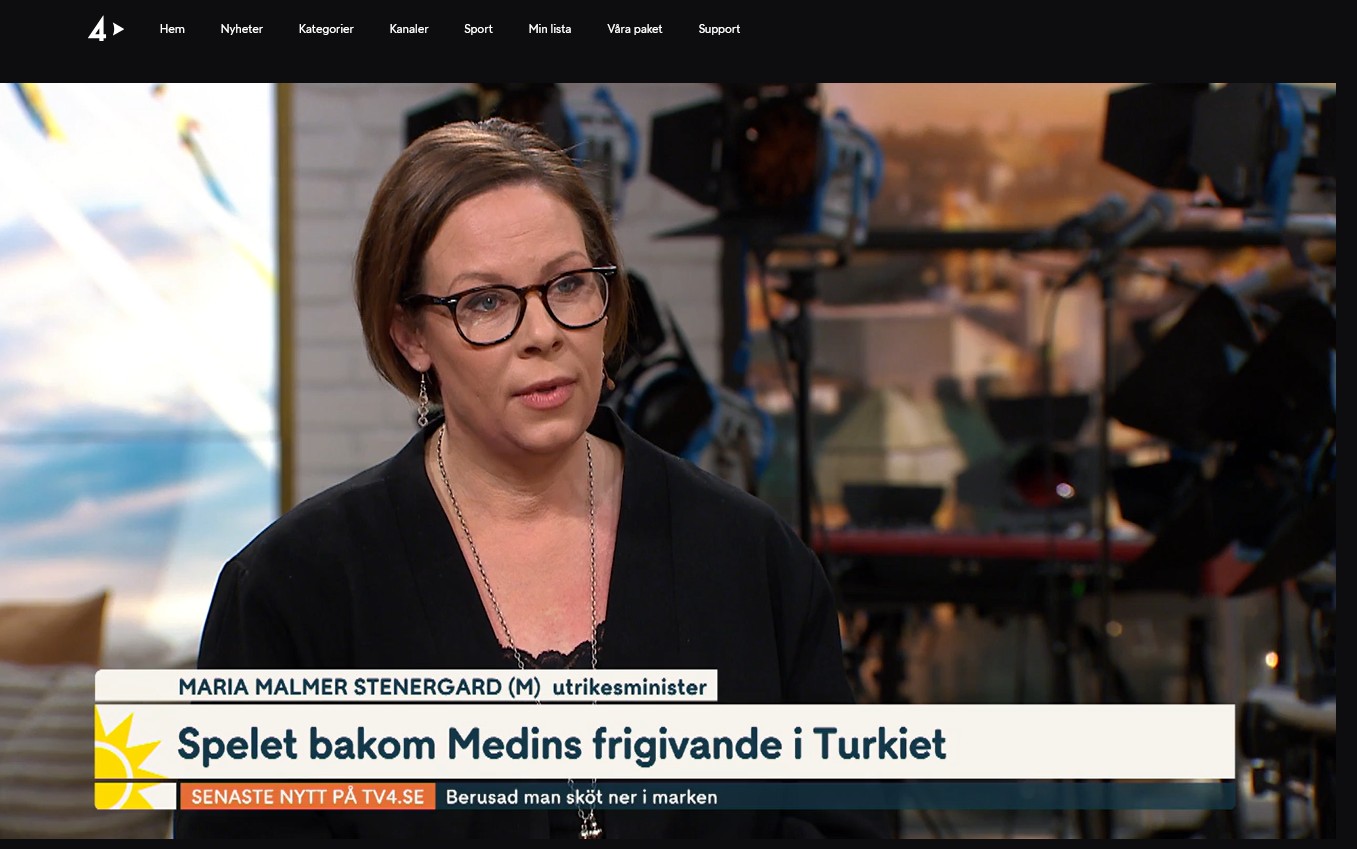 Uttalandena är häpnadsväckande och tyvärr smärtsamt tidstypiska. Men de var vad som hände i morse i TV4 när utrikesminister Maria Malmer Stenergard kommenterade vår rapportering om de från Turkiet framförda önskemålen. Hon ifrågasatte också varför man” inte bara kan glädjas” åt att Medin är hemma – istället för att ställa kritiska frågor.