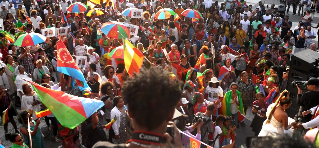 Toppbild: Demonstration på Sergels torg efter freden mellan Etiopien och Eritrea 2018. Arkivfoto av Martin Schibbye