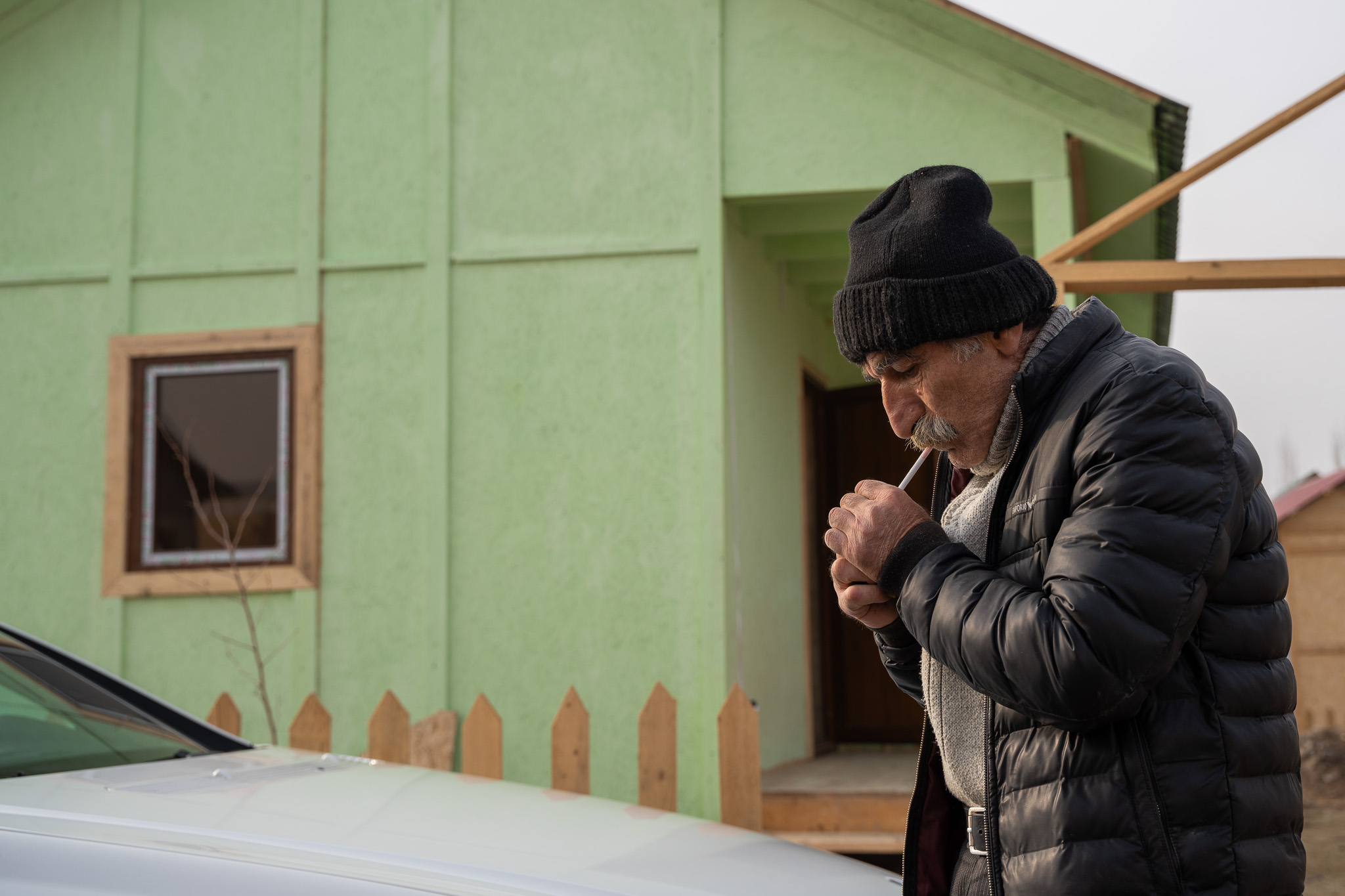 Top image: Armen Harutyunyan lights a cigarette in front of his new house. Photo by Rasmus Canbäck